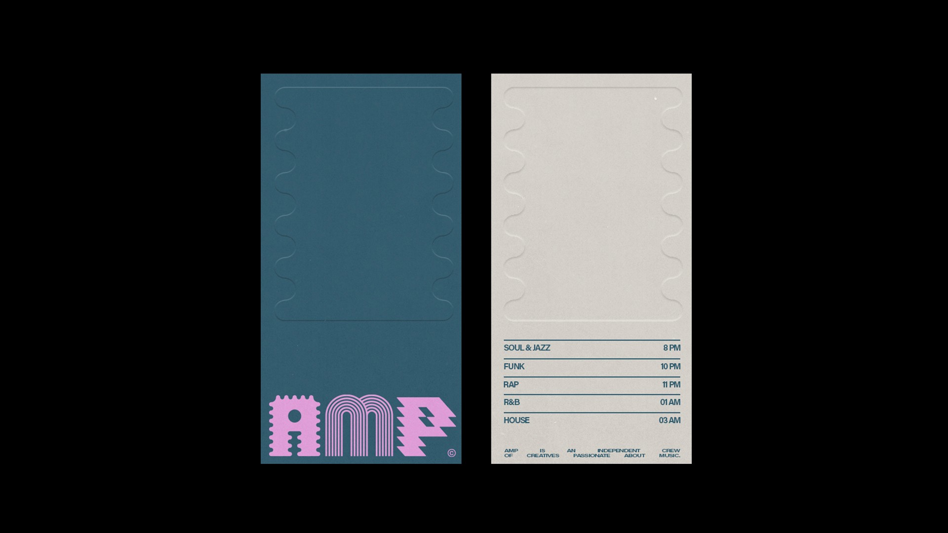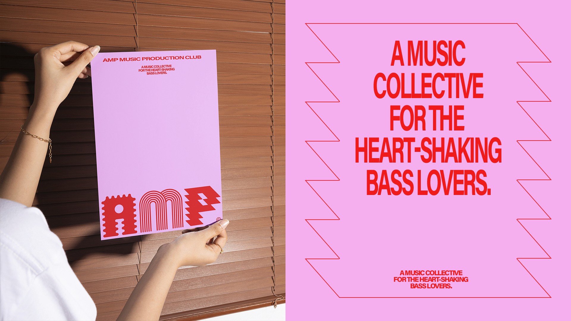 AMP is a music collective and label that brings together artists, producers, and the broader creative community to strengthen the independent music scene. The visual identity is inspired by the propagation and distortion of sound waves — translating their energy and movement into a dynamic visual language.